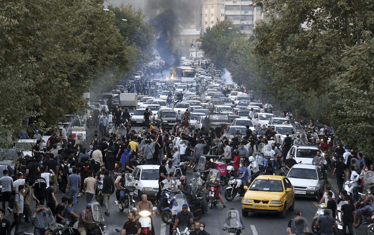 Protesters chant slogans during a protest in downtown Tehran, Iran, on September 21, 2022. Photo: Handout/AP