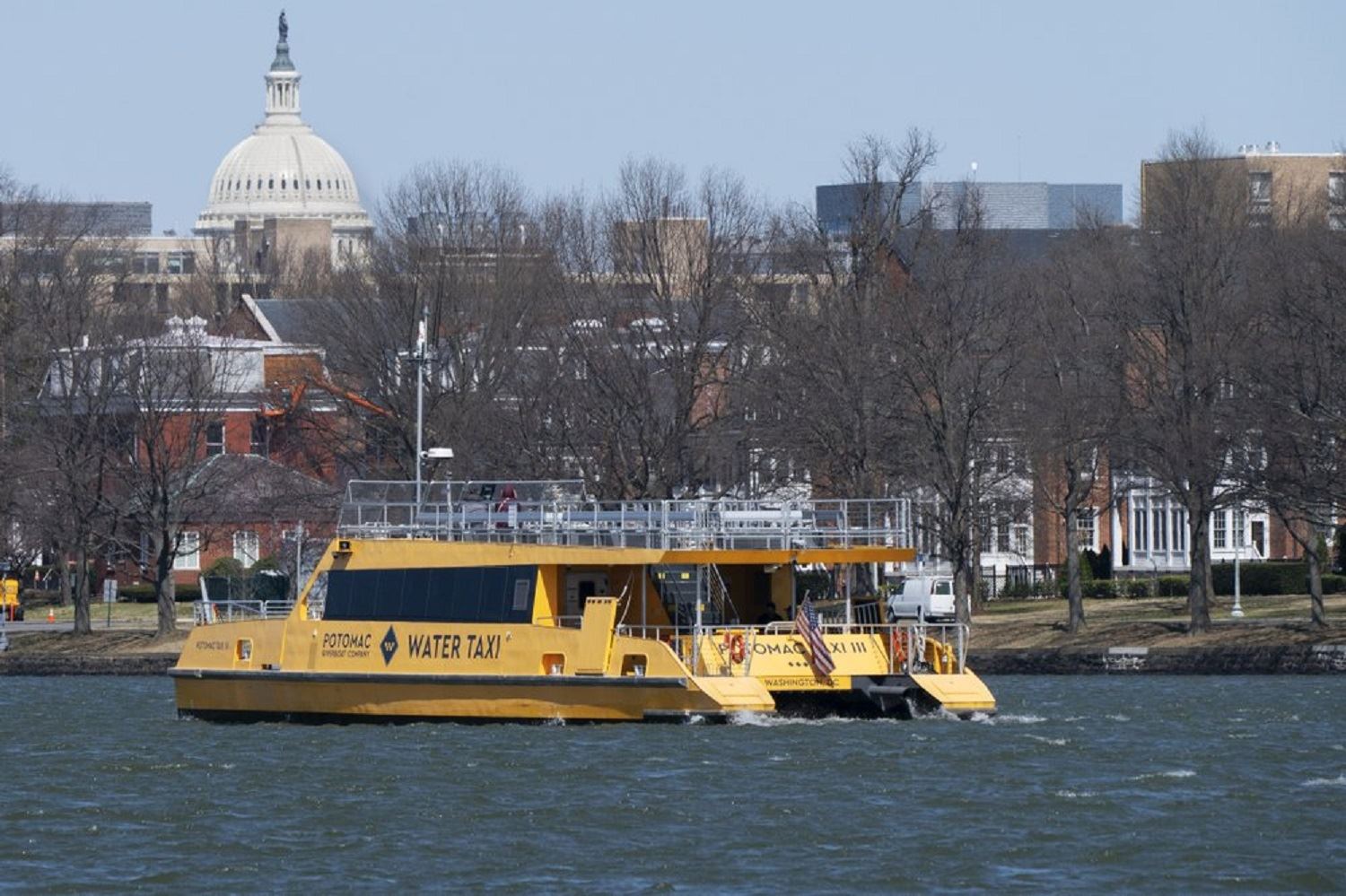 In this Friday March 19, 2021, photo a water taxi passes in the waterway next to Fort McNair, with the Capitol seen in the background in Washington. Photo: Jacquelyn Martin/ AP