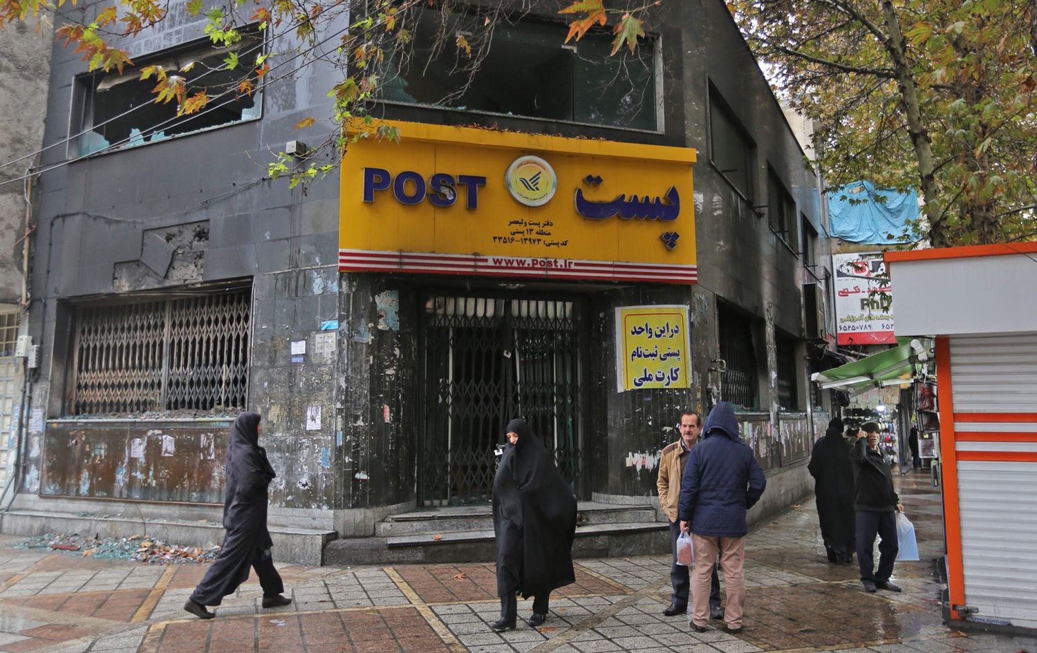 Iranians gather outside a post office branch that was damaged during demonstrations against petrol price hikes, on November 20, 2019 in Shahriar, west of Tehran. Photo: Atta Kenare/AFP