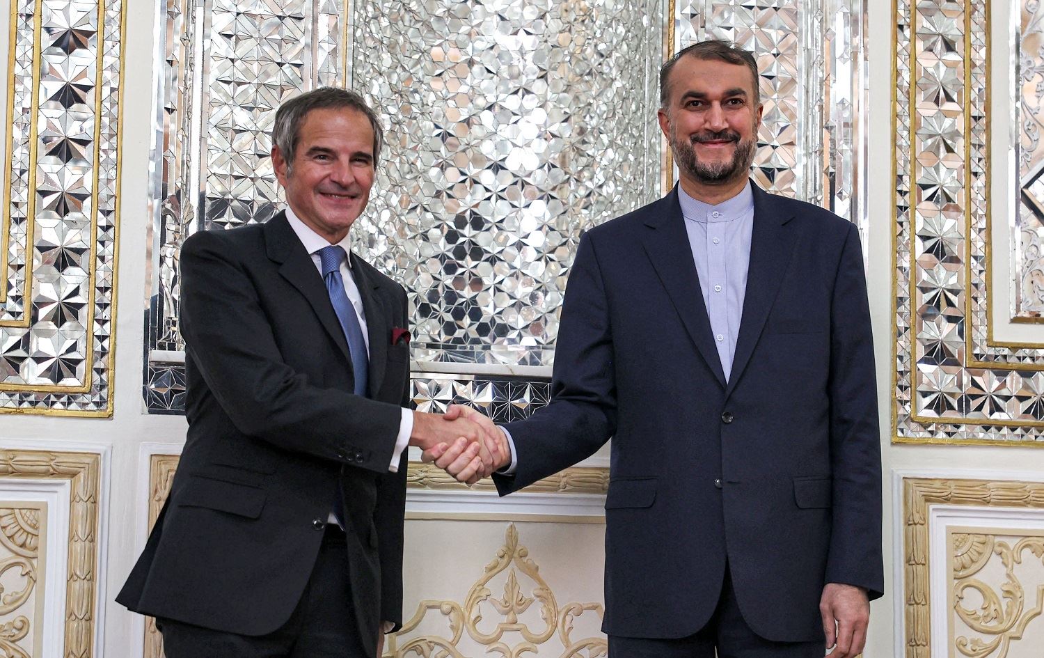 Iran's Foreign Minister Hossein Amir-Abdollahian (right) meets with the Director-General of the International Atomic Energy Agency (IAEA) Rafael Grossi (left) at the foreign ministry headquarters in Tehran on November 23, 2021. Photo: Atta Kenare/AFP
