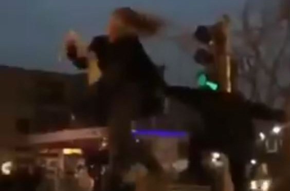 VIDEO: Who’s he protecting? A police man proudly pushes down a woman peacefully protesting against the compulsory hijab in #Iran. #GirlsOfRevolutionStreet pic.twitter.com/BSgOnFMv9w