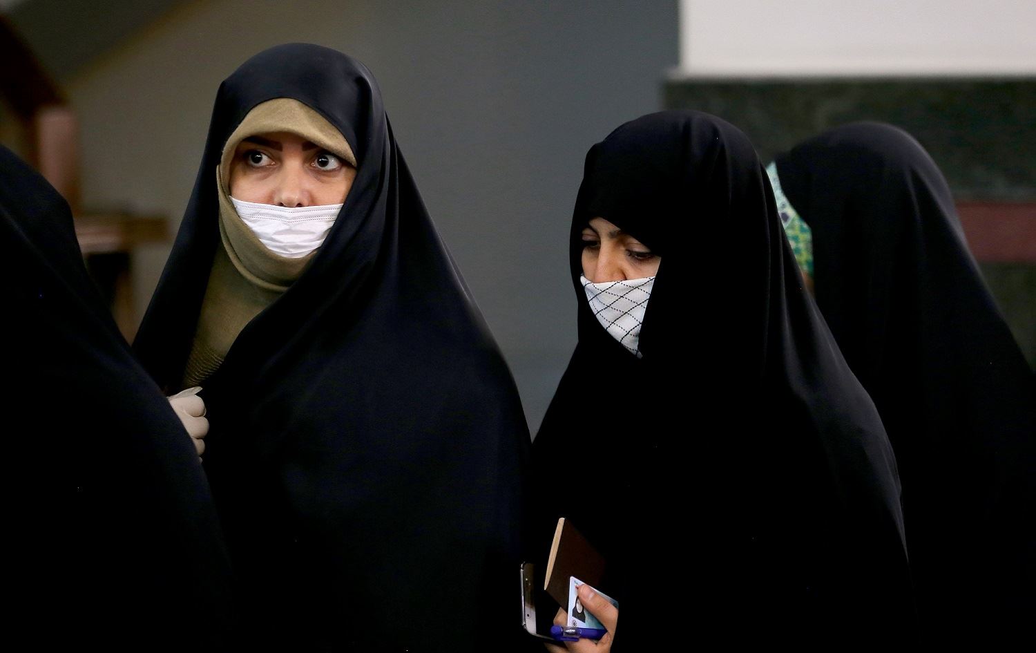 Iranian voters wear masks as they wait to cast their ballots during parliamentary elections at the Shah Abdul Azim shrine on the southern outskirts of Tehran, February 21, 2020. Photo: Atta Kenare / AFP