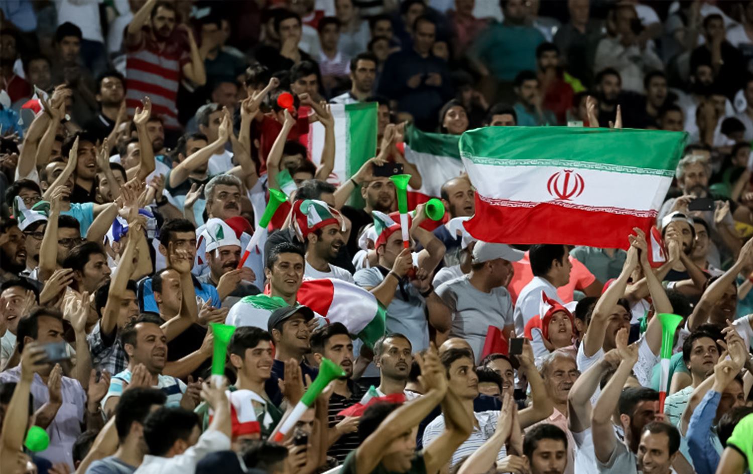 Supporters of the Iranian national soccer team cheer during the 2018 World Cup qualifying match between Iran and Uzbekistan at the Azadi Stadium in Tehran on June 12, 2017. Photo: Atta Kenare/AFP