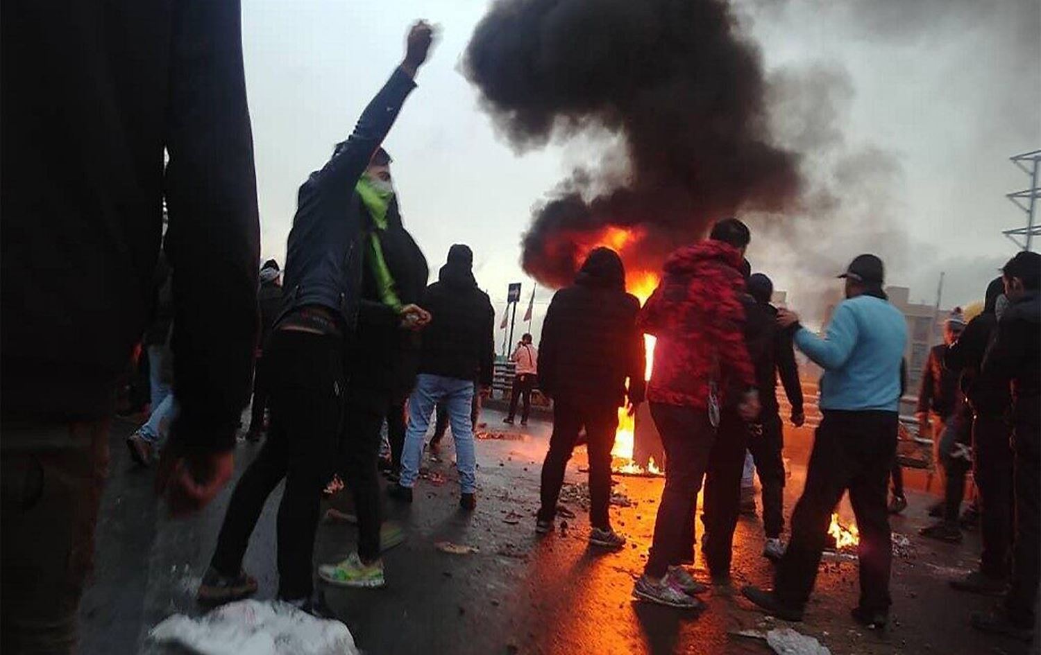 Iranian protesters gather around a fire during a demonstration against an increase in gasoline prices in the capital Tehran, on November 16, 2019. Photo via AFP