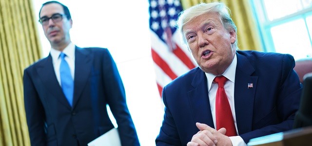 US President Donald Trump (R) and US Treasury Secretary Steven Mnuchin in the White House Oval Office, June 24, 2019. Photo: Mandel Ngan / AFP