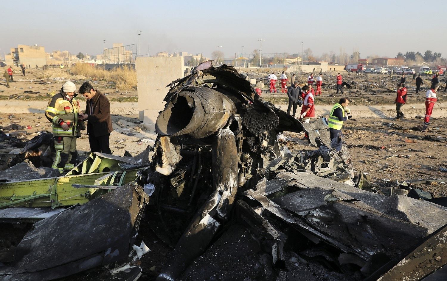 Debris litters the scene where a Ukrainian plane crashed after it was shot down southwest of Tehran, Iran, January 8, 2020. File photo: Ebrahim Noroozi/AP