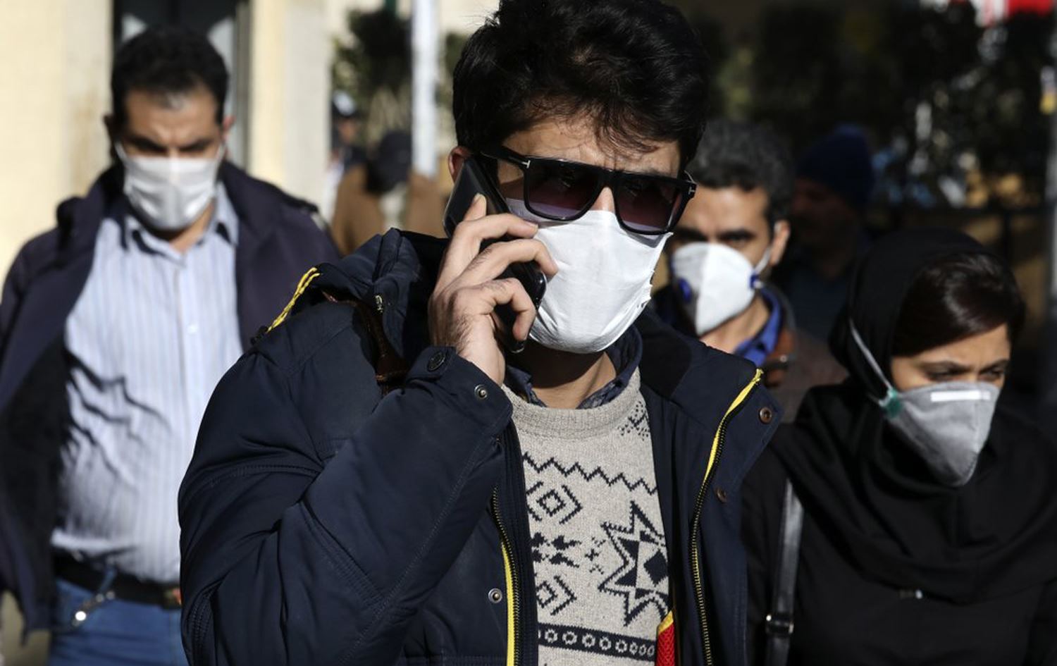 A man wearing a face mask to help protect against coronavirus speaks on his cellphone in downtown Tehran, Iran, March 2, 2020. File photo: Vahid Salemi / AP