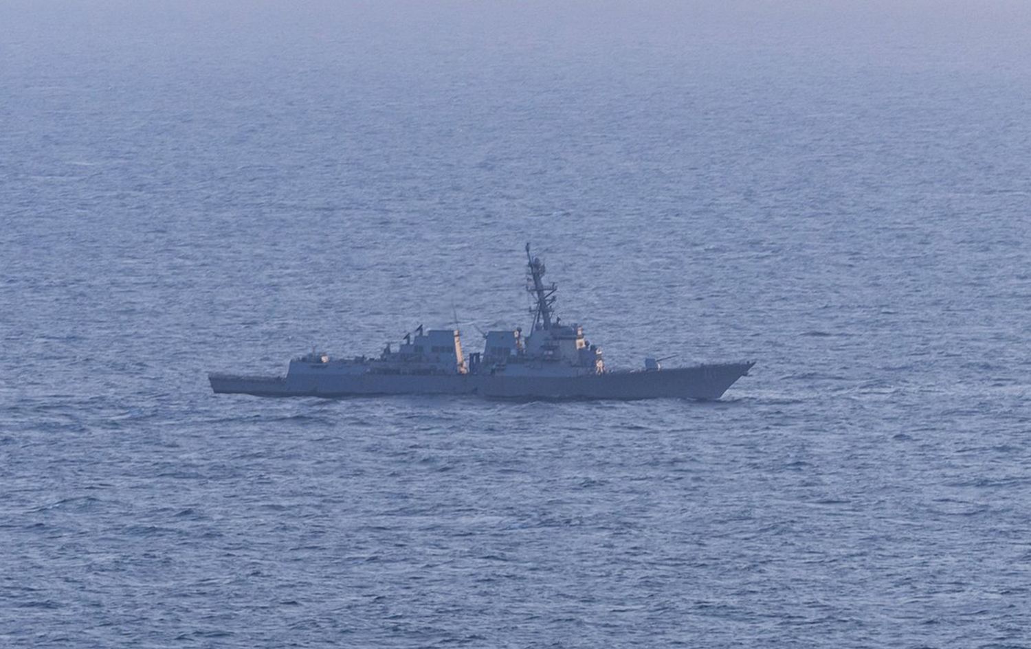 An Iranian-flagged cargo vessel attempts to evade the US blockade after departing Bandar Abbas in, exiting the Strait of Hormuz, before being redirected by the USS Spruance on April 16, 2026. Photo: CENTCOM/X