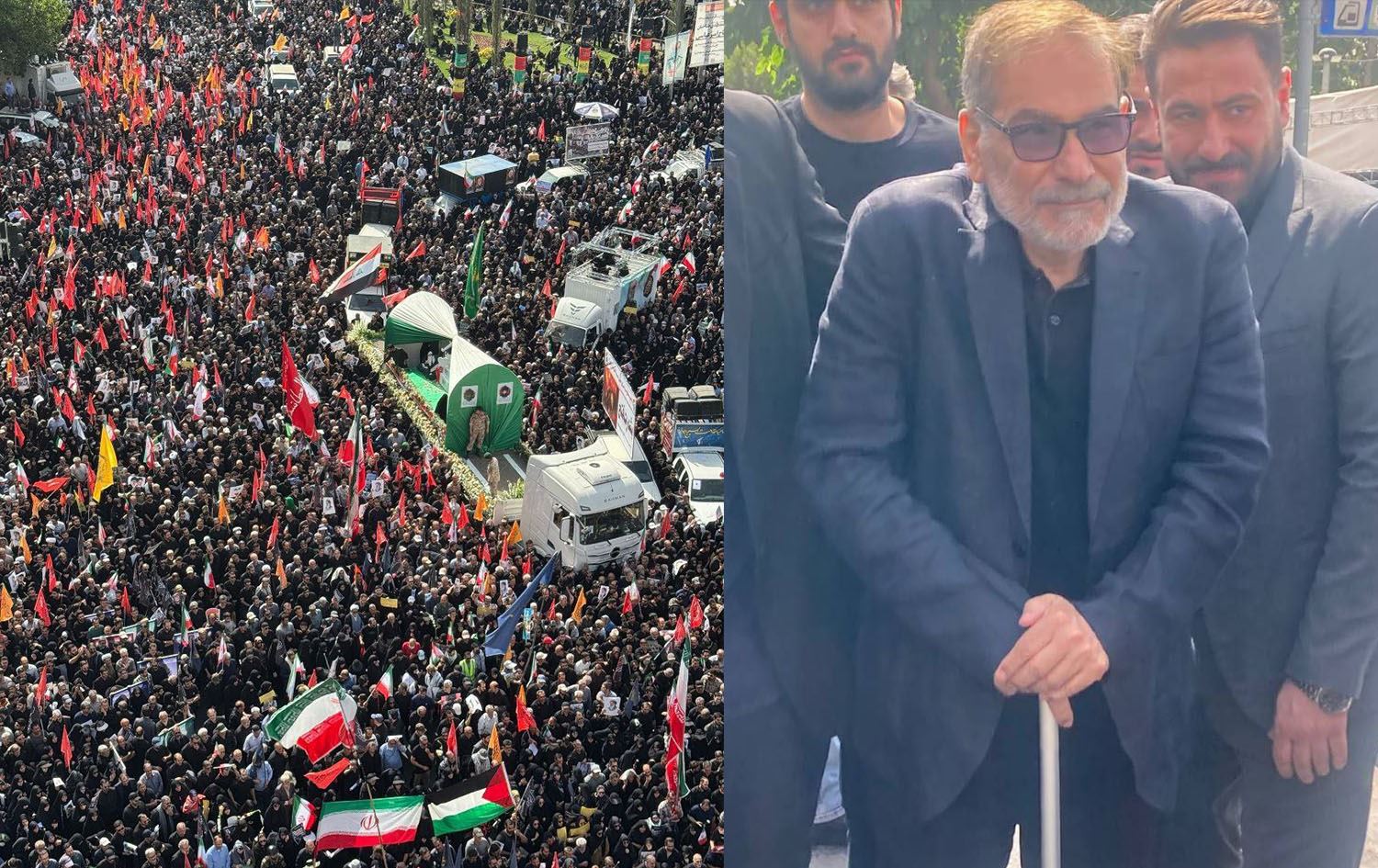 Ali Shamkhani, a senior advisor to Iran’s Supreme Leader Ayatollah Ali Khamenei's first public appearance after Israeli attacks (Right), at state funeral ceremony in Iran's Tehran (Left) on June 28, 2025. Photo: IRIB