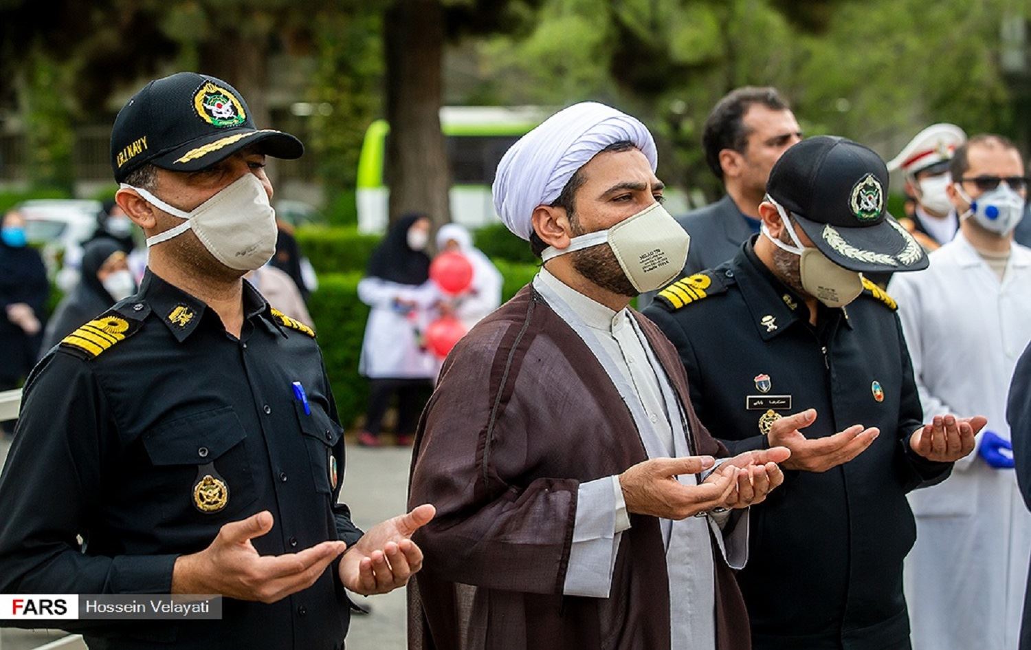 People pay respect to medical personnel of the Iranian navy at Tehran's Golestan hospital on April 19, 2020. Photo: Fars News