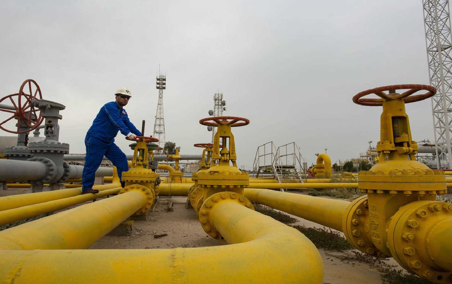 An employee turns a valve at the Nahr Bin Omar natural gas field, north of the Iraqi city of Basra on April 20, 2020. Photo: Hussein Faleh / AFP