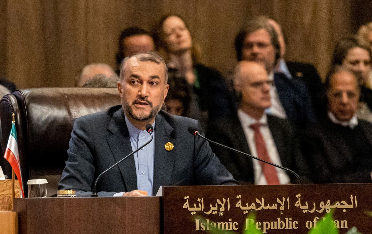 A handout picture released by the Jordanian Royal Palace shows Iran's Foreign Minister Hossein Amir-Abdollahian (L) speaking at the "Baghdad Conference for Cooperation and Partnership" in Sweimeh by the Dead Sea shore in central-west Jordan on December 20, 2022. Photo: AFP/ JORDANIAN ROYAL PALACE / YOUSEF ALLAN