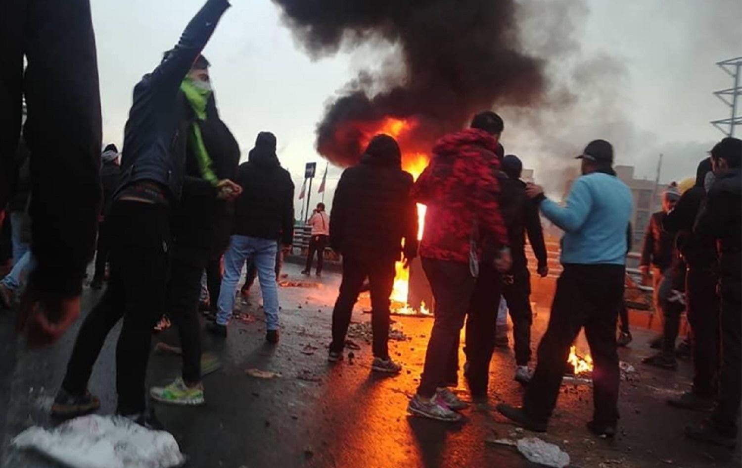 Protesters gather around a fire during a November 2019 demonstration in the Iranian capital of Tehran. Photo: AFP