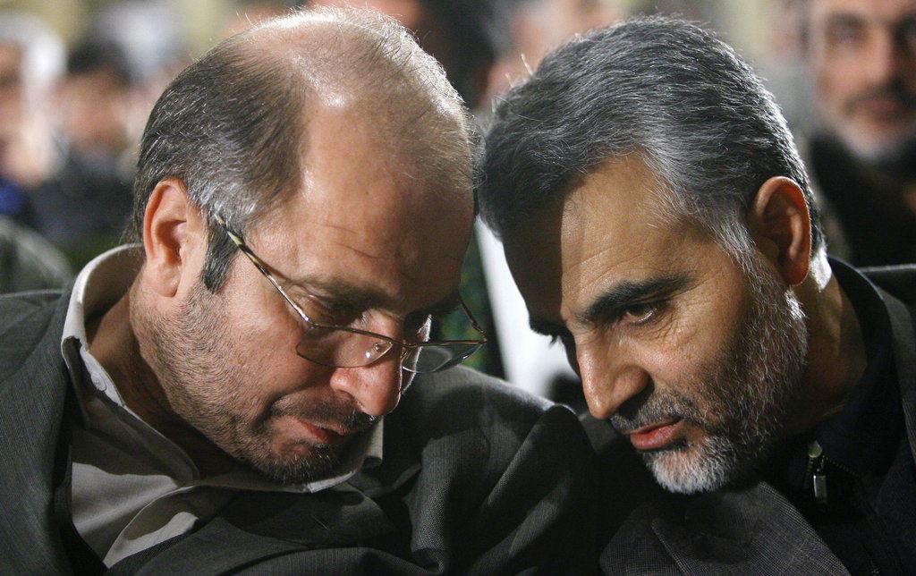 In this file photo from 2006, Maj. Gen. Qasem Soleimani, right, consults withMohammad-Baqer Qalibaf, then mayor of Tehran. Photo: Mehdi Ghasemi/ISNA, via AP