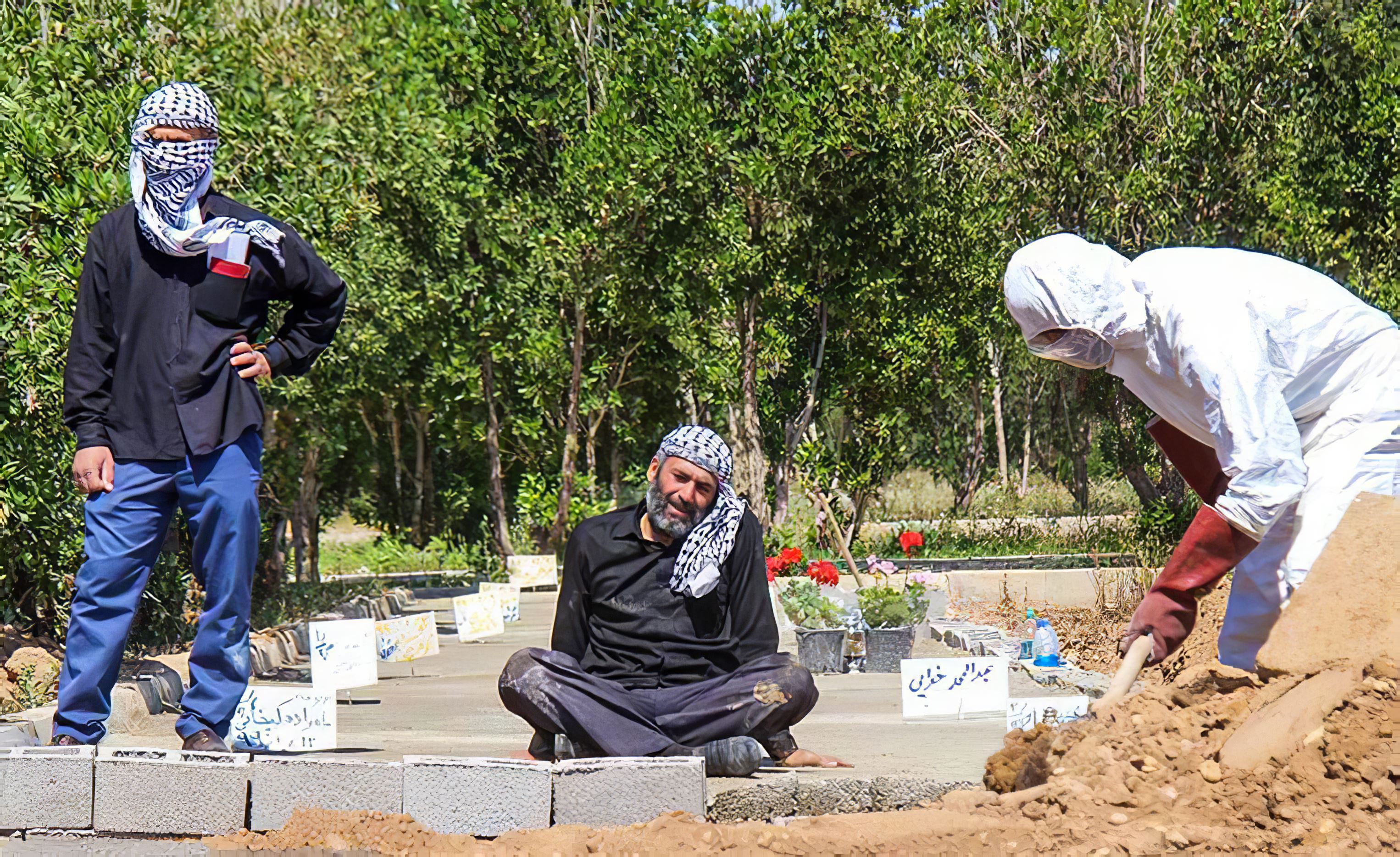 A man mourns as more are buried in Ahvaz, Iran on April 6, 2020. Photo: Mohammed Ahangar/ Fars News