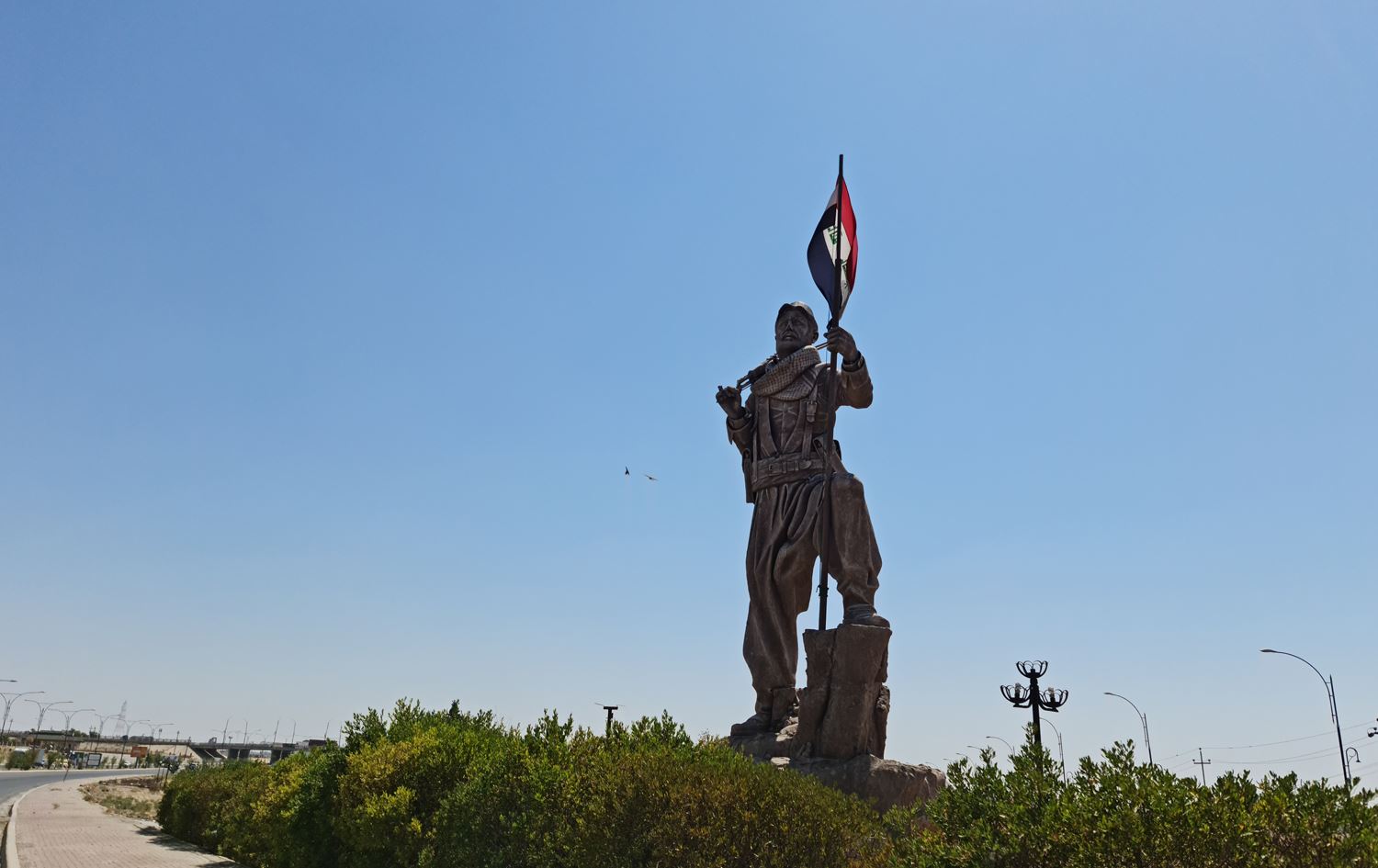 The Peshmerga statue in Kirkuk used to hold the flag of the Kurdistan Region prior to October 16, 2017 but has been replaced with the Iraqi flag since. Photo: Bilind T. Abdullah/Rudaw