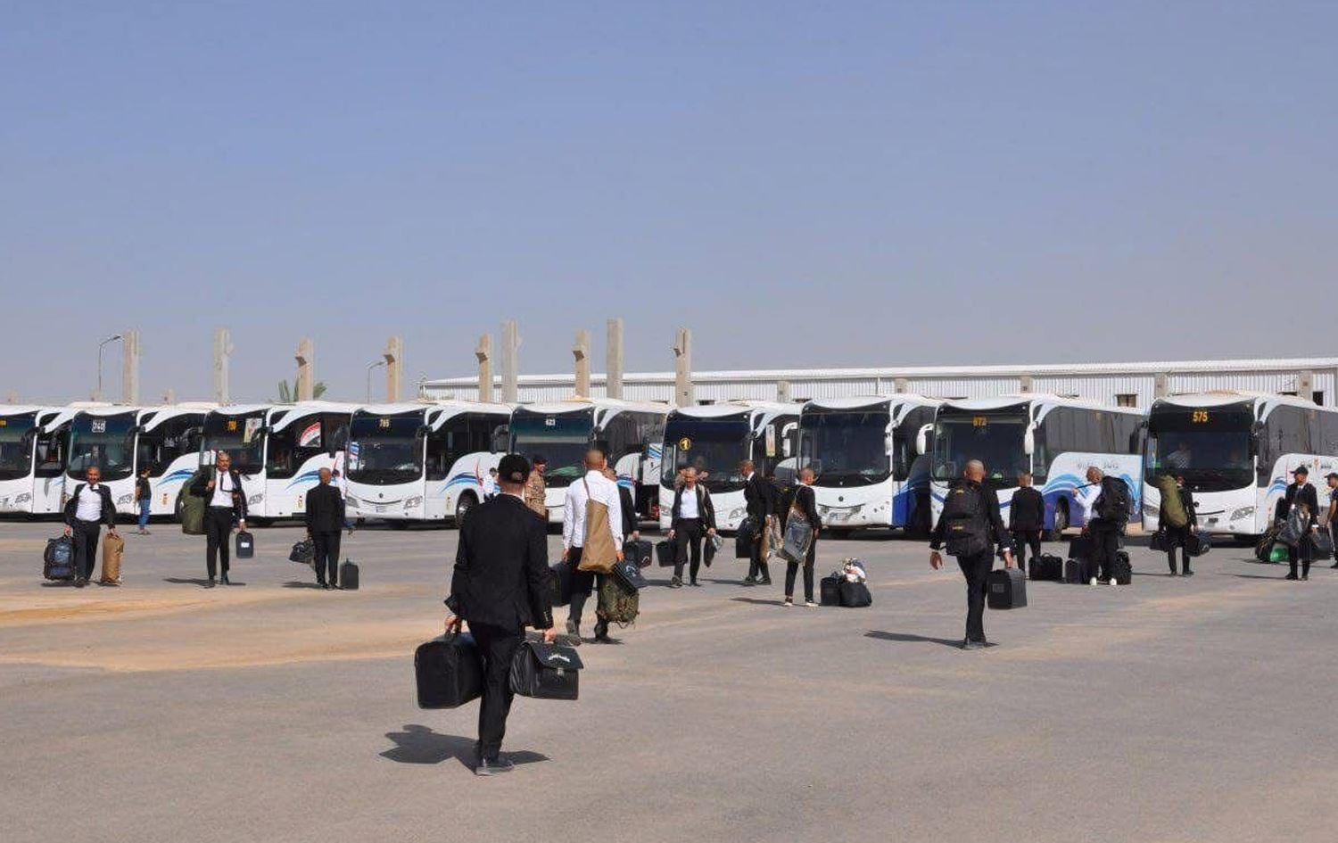 Buses arranged to transfer students of the Fourth Military College in Dhi Qar province to Baghdad on June 1, 2025. Photo: INA