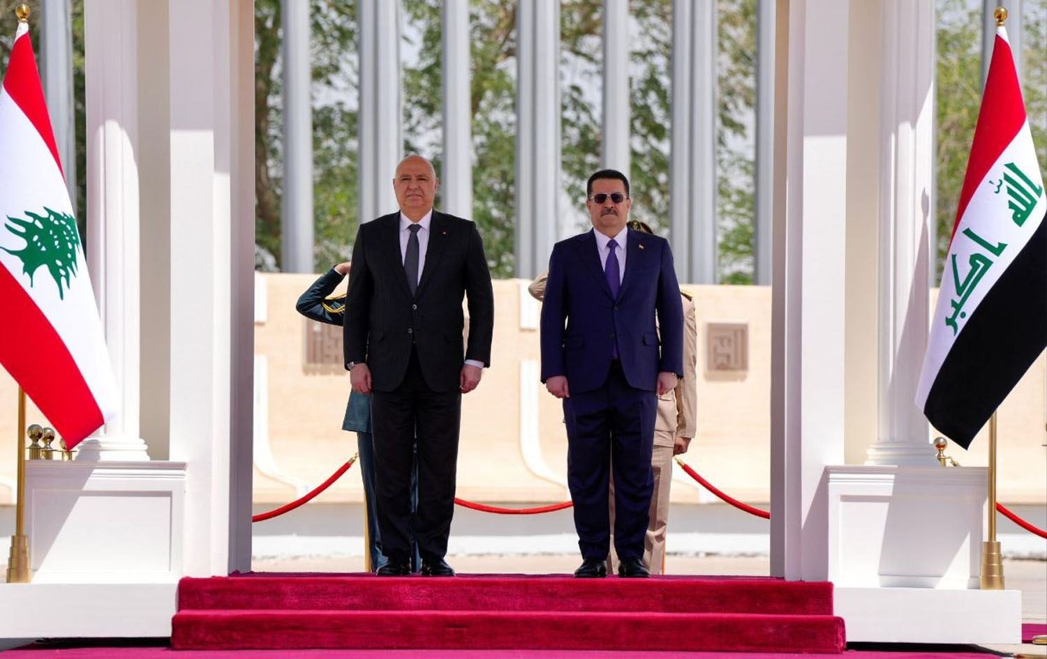 Iraqi Prime Minister Mohammed Shia' al-Sudani (right) hosts an official welcome ceremony for Lebanese President Joseph Aoun (left) in Baghdad on June 1, 2025. Photo: Sudani's office