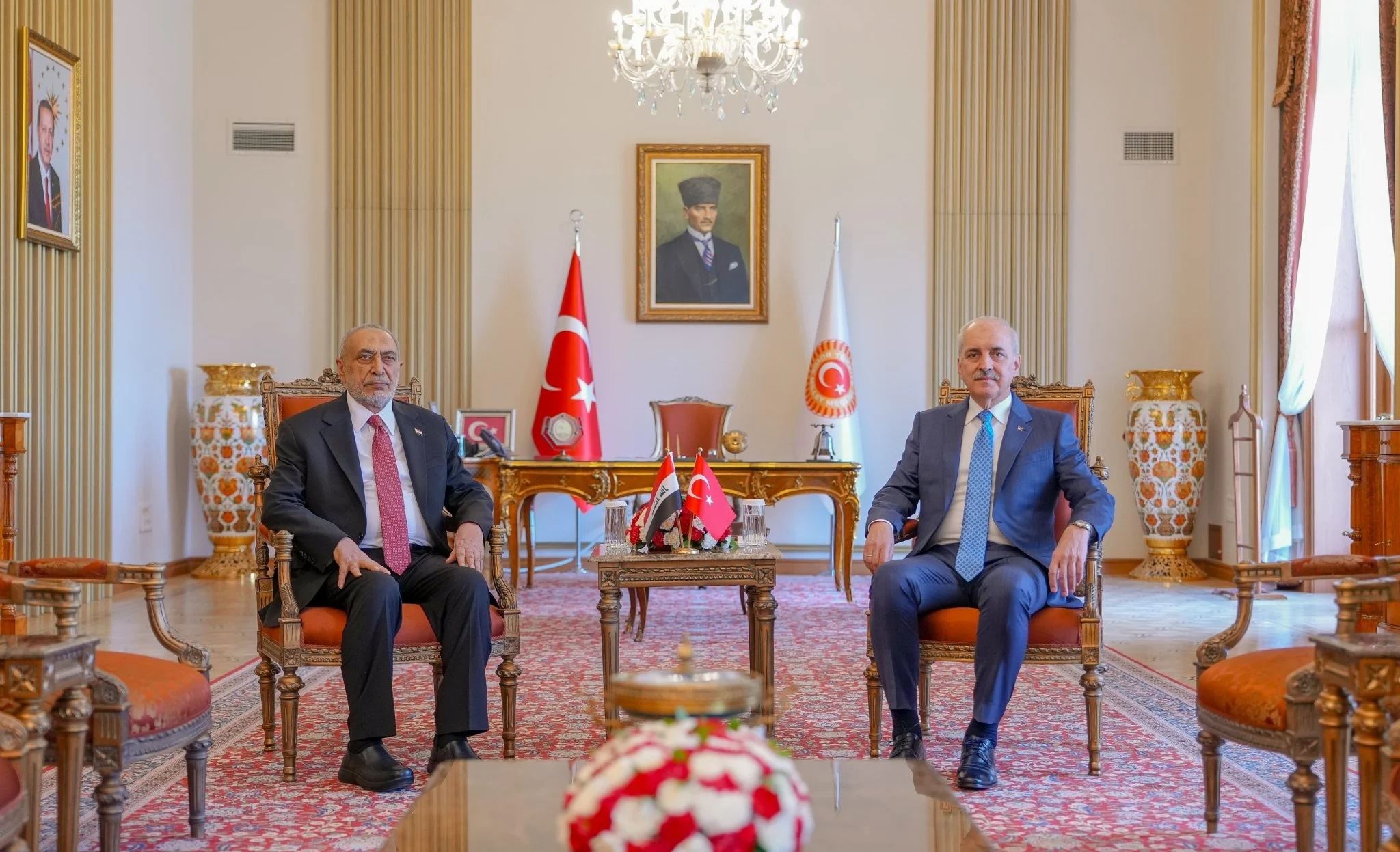 Iraqi Parliament Speaker Mahmoud al-Mashhadani (left) meets his Turkish counterpart Numan Kurtulmus (right) in Ankara on July 1, 2025. Photo: Iraqi parliament