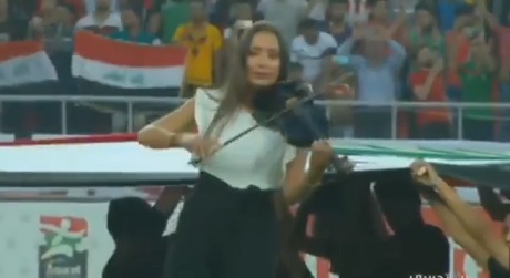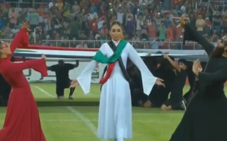 Photo: Iraqi Football Association / FacebookThe ceremony included three dancers, two women and one man, dressed head to toe in the colors of the Iraqi national flag. It also featured a female musician who performed a rendition of the Iraqi national anthem on a black violin.
