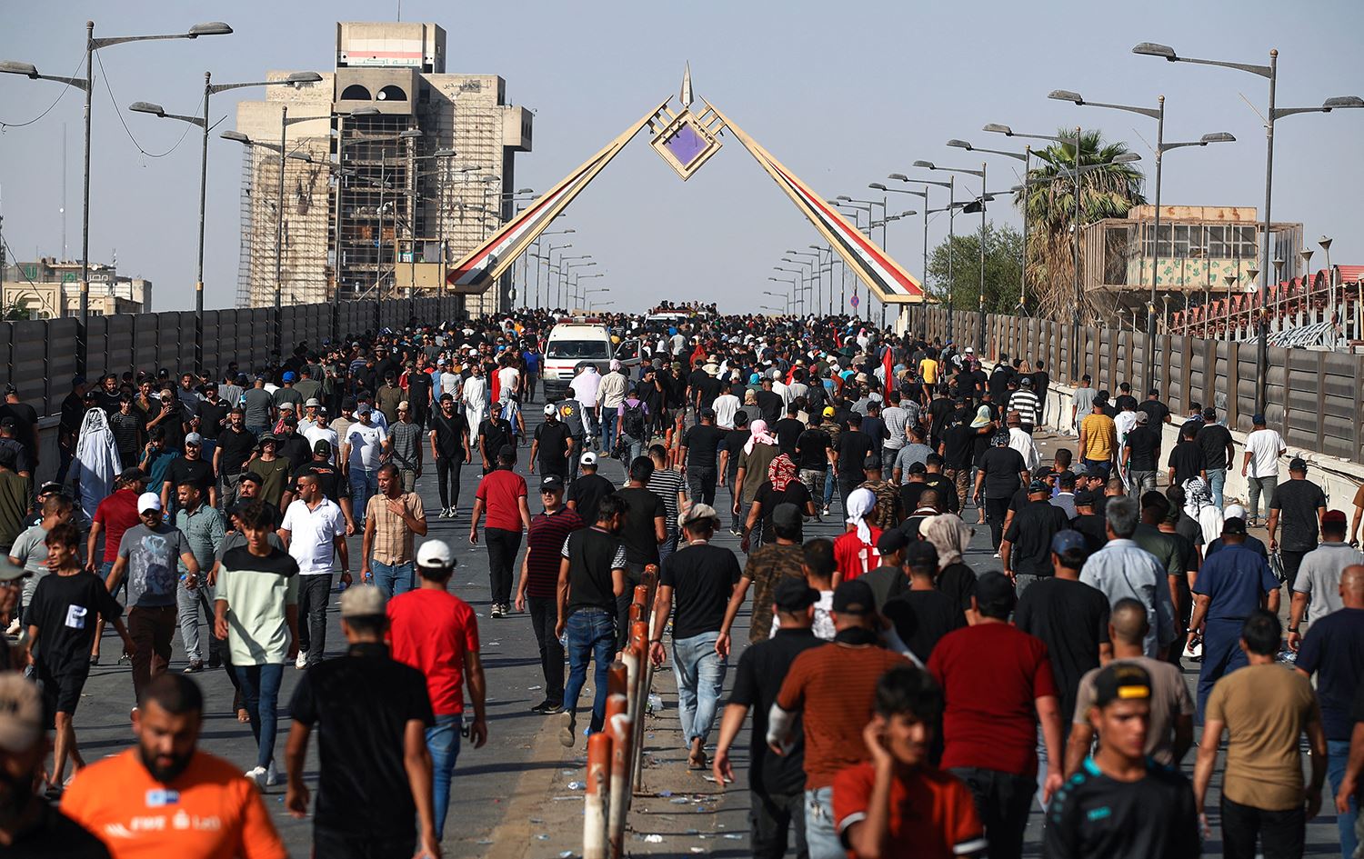 Supporters of top Shiite cleric Muqtada al-Sadr crowding the al-Jumhuriya bridge leading to Baghdad's Green Zone on July 30, 2022. Photo: Ahmad al-Rubaye/AFP
