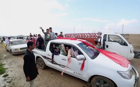 For these men dancing in Salamiyah camp for displaced people in Mosul, today is a day of celebration.