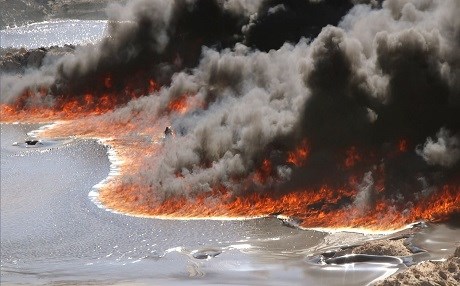 ISIS militants set on fire 18 of the wells last summer to create a protective screen against air strikes.