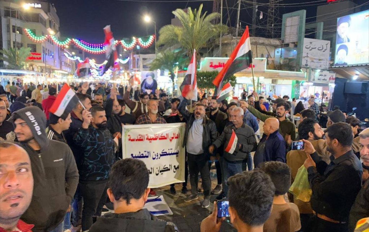 The protesters held demonstrations in Baghdad's Sadr City and al-Kadhimiya neighborhood, calling on the Iraqi government to release a statement denying any form of normalization with Israel, while burning flags of the Jewish state.