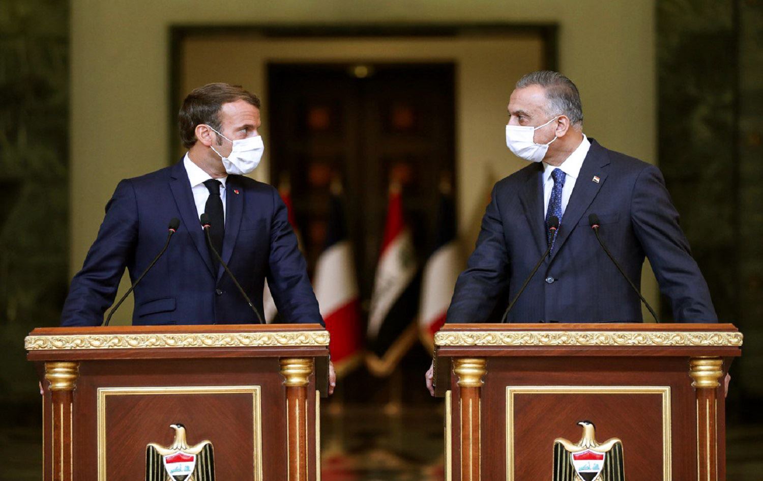 PM Mustafa al-Kadhimi with French President Emmanuel Macron in Baghdad on September 2, 2020. Photo:Iraqi Prime Minister's Press Office/ AFP