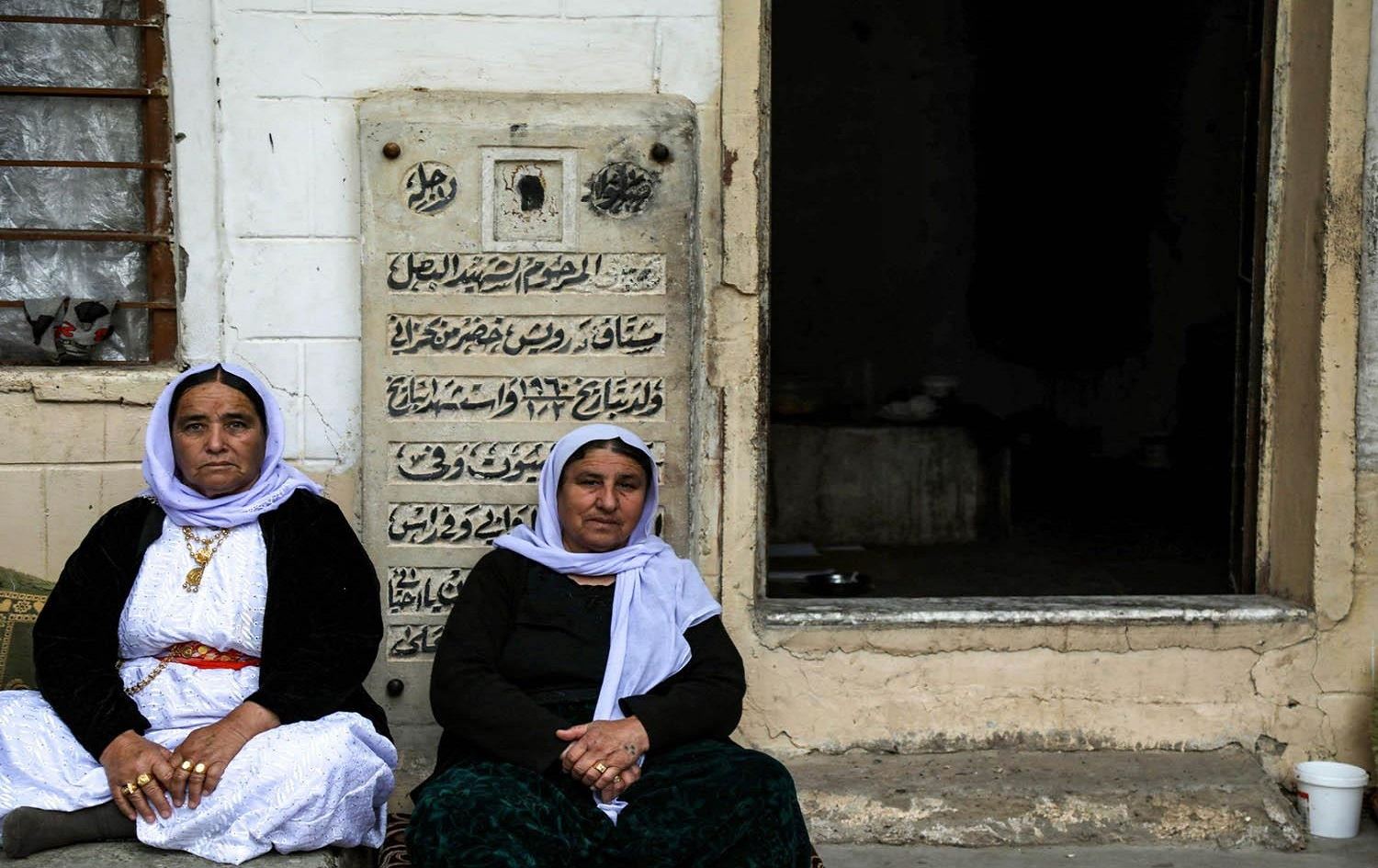 Yezidi women sit outside the Temple of Lalish on April 16, 2019, during a ceremony marking the Yezidi New Year. File photo: AFP