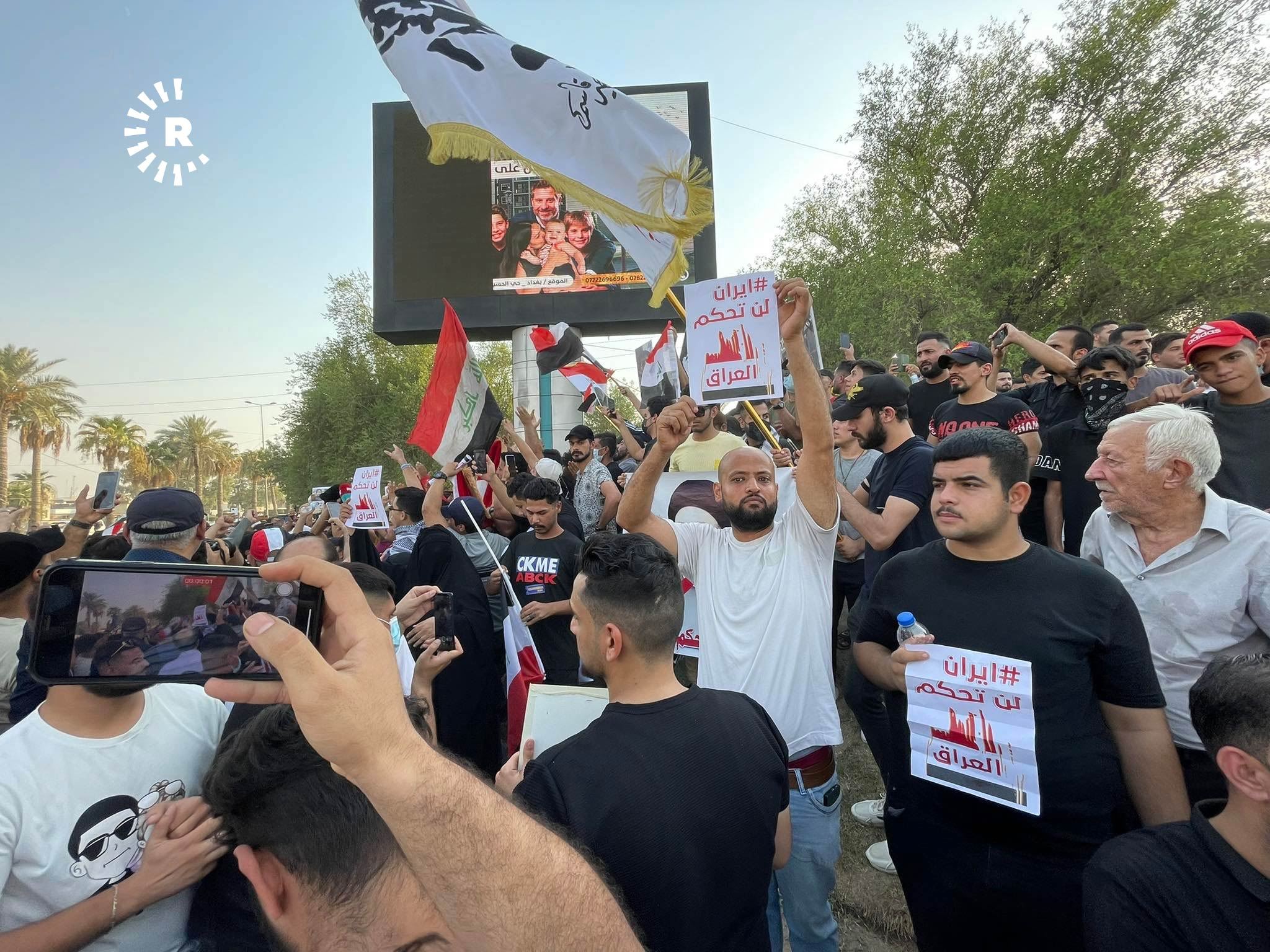 Hundreds of Tishreen protesters held fresh demonstrations in Baghdad’s Nisour Square Friday afternoon, carrying anti-Iran slogans and demanding the dissolution of the current parliament.