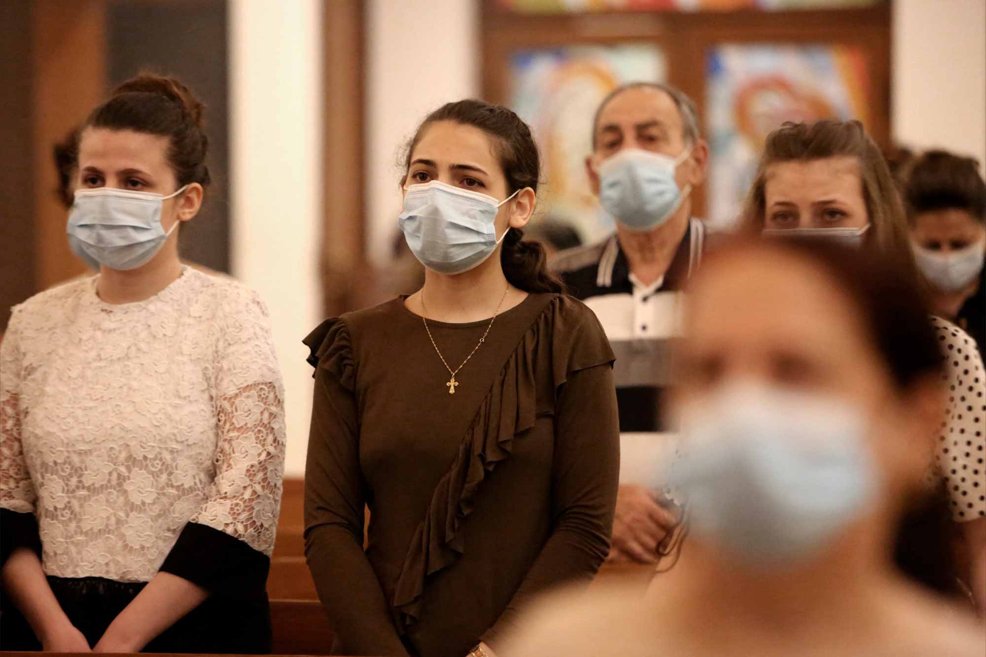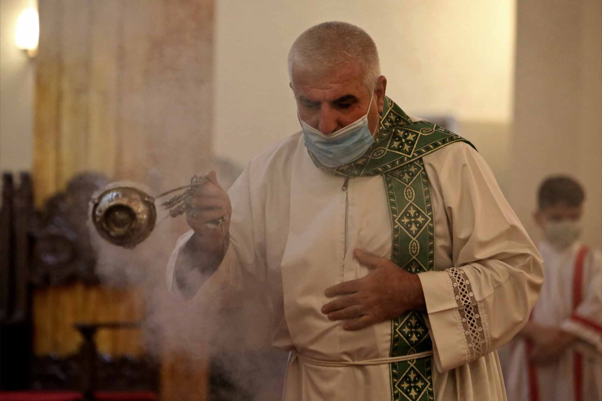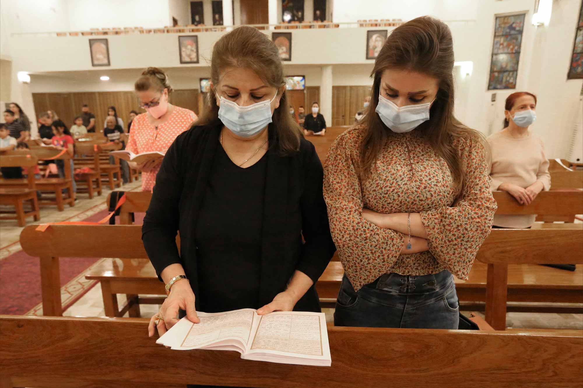 ERBIL, Kurdistan Region — Worshippers, wearing protective masks due to the COVID-19 pandemic, attended a mass on All Saints' Day at the Chaldean Cathedral of Saint Joseph in Baghdad on Sunday.