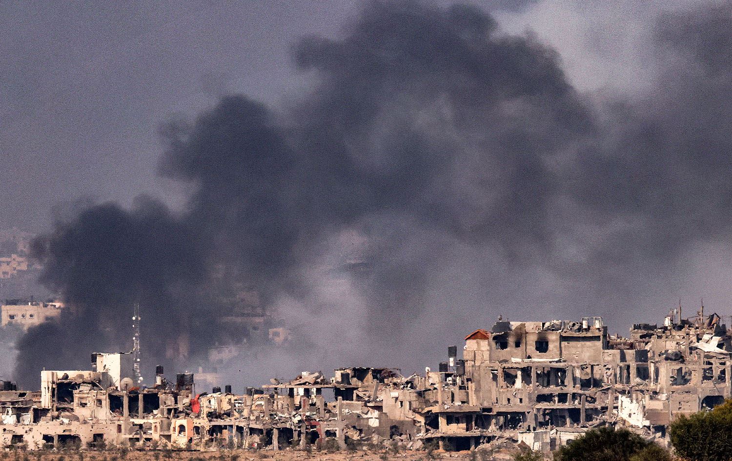 This picture taken on November 1, 2023 from a position along the border with the Gaza Strip in southern Israel shows smoke plumes billowing during Israeli bombardment amid ongoing battles between Israel and the Palestinian Hamas movement. Photo: Jack Guez/AFP