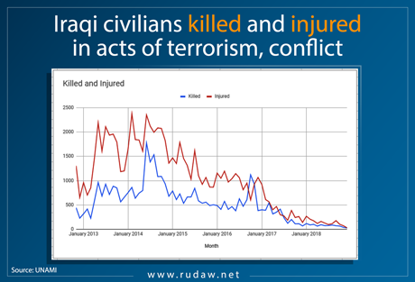 ERBIL, Kurdistan Region – The numbers of Iraqis dying from terrorism and conflict continues to drop, according to the most recent figures from the United Nations that recorded record low casualty figures for the third month in a row.