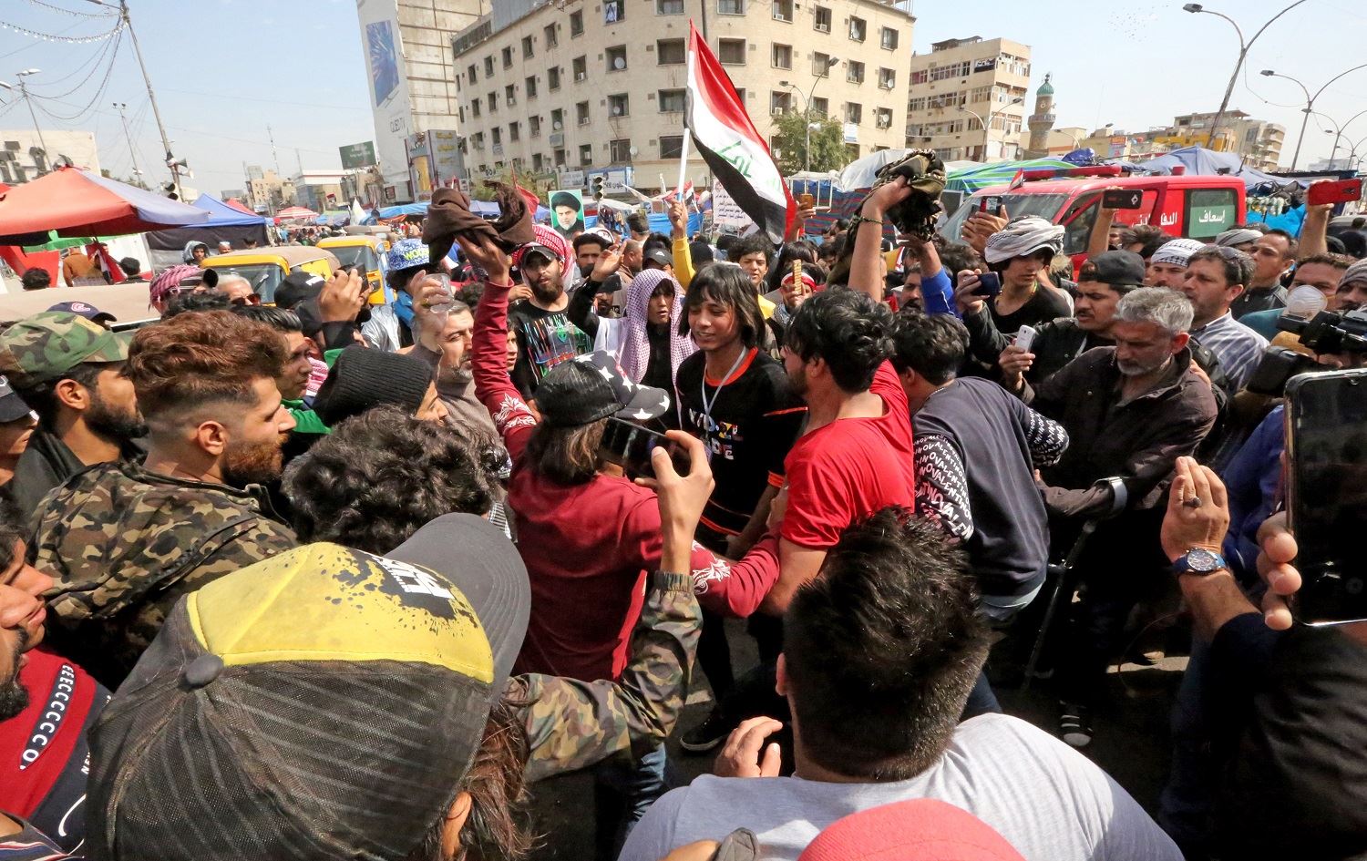 Iraqi protesters gather during ongoing anti-government demonstrations in Baghdad's Tahrir Square on March 1, 2020. Photo: Sabah Arar/AFP