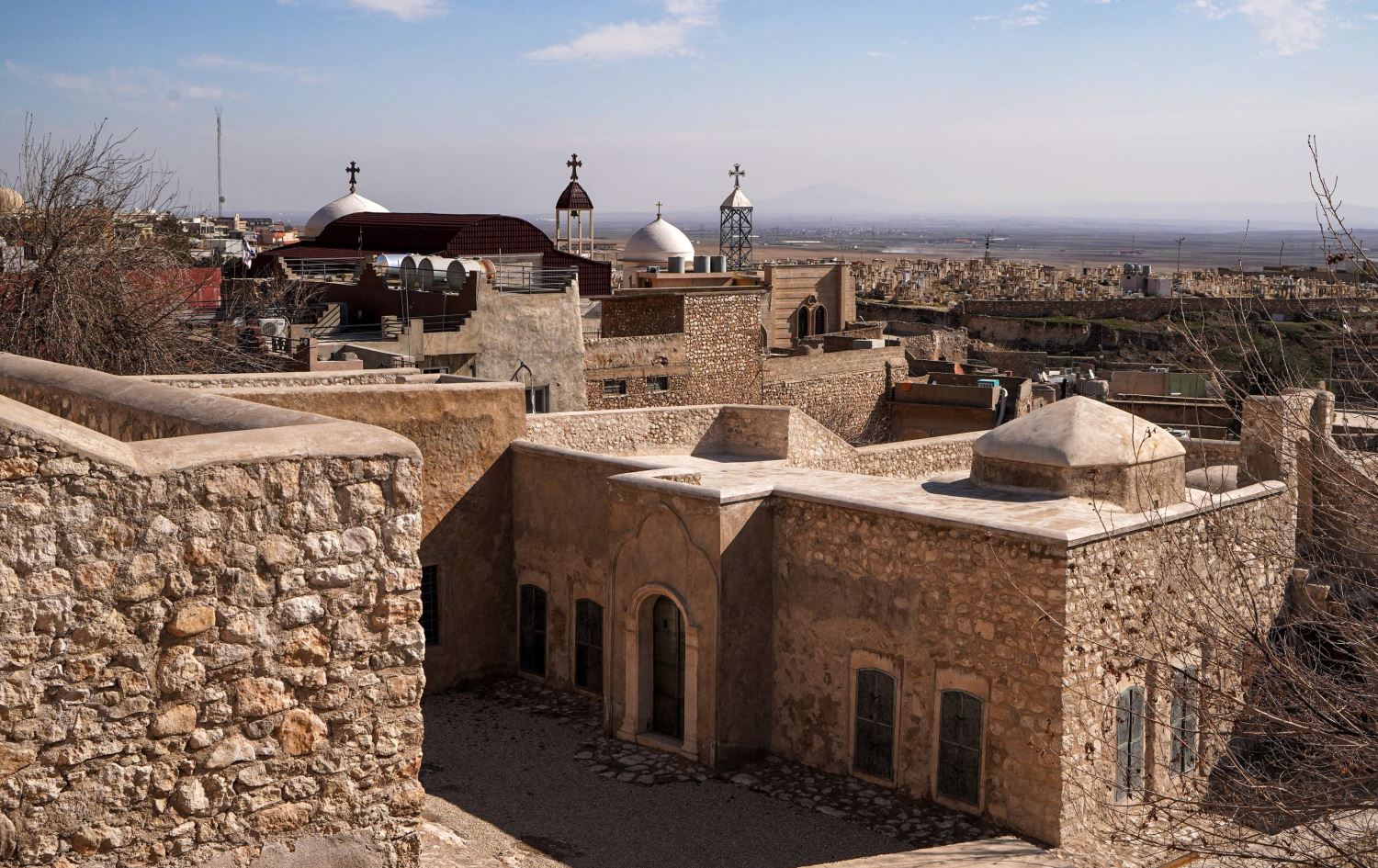 Surrounded by church steeples in the village of Al-Qosh, the stone sanctuary now looks almost new. Built under its actual form in the 18th century, it could date back to the 10th century, according to local officials.