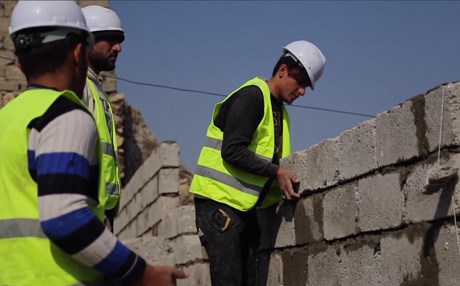 MOSUL, Iraq – Busy construction workers in hard hats and reflective gear - this is Mosul today.