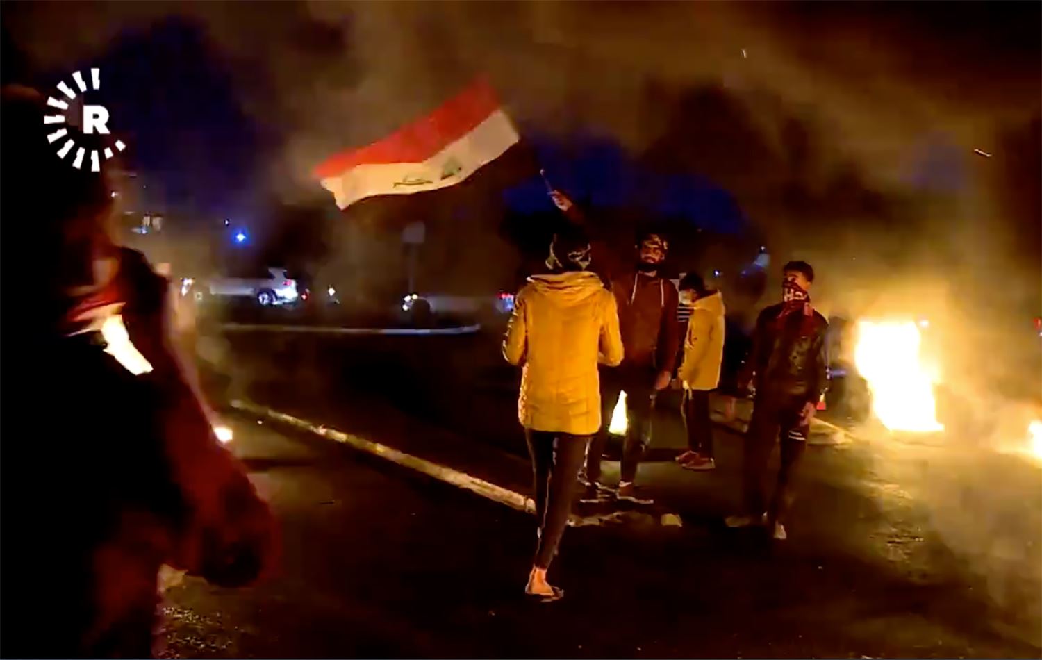 Protesters burned tires in Nasriyah's streets following sound bombs and live ammunition, which forced the city's police forces to withdraw from the city.