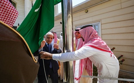 Iraqi-Saudi ties were realized in brick and mortar when Iraqi Minister of Foreign Affairs Mohammed al-Hakim helped raise the Saudi flag over the Kingdom’s consulate in Baghdad, opened on Thursday.