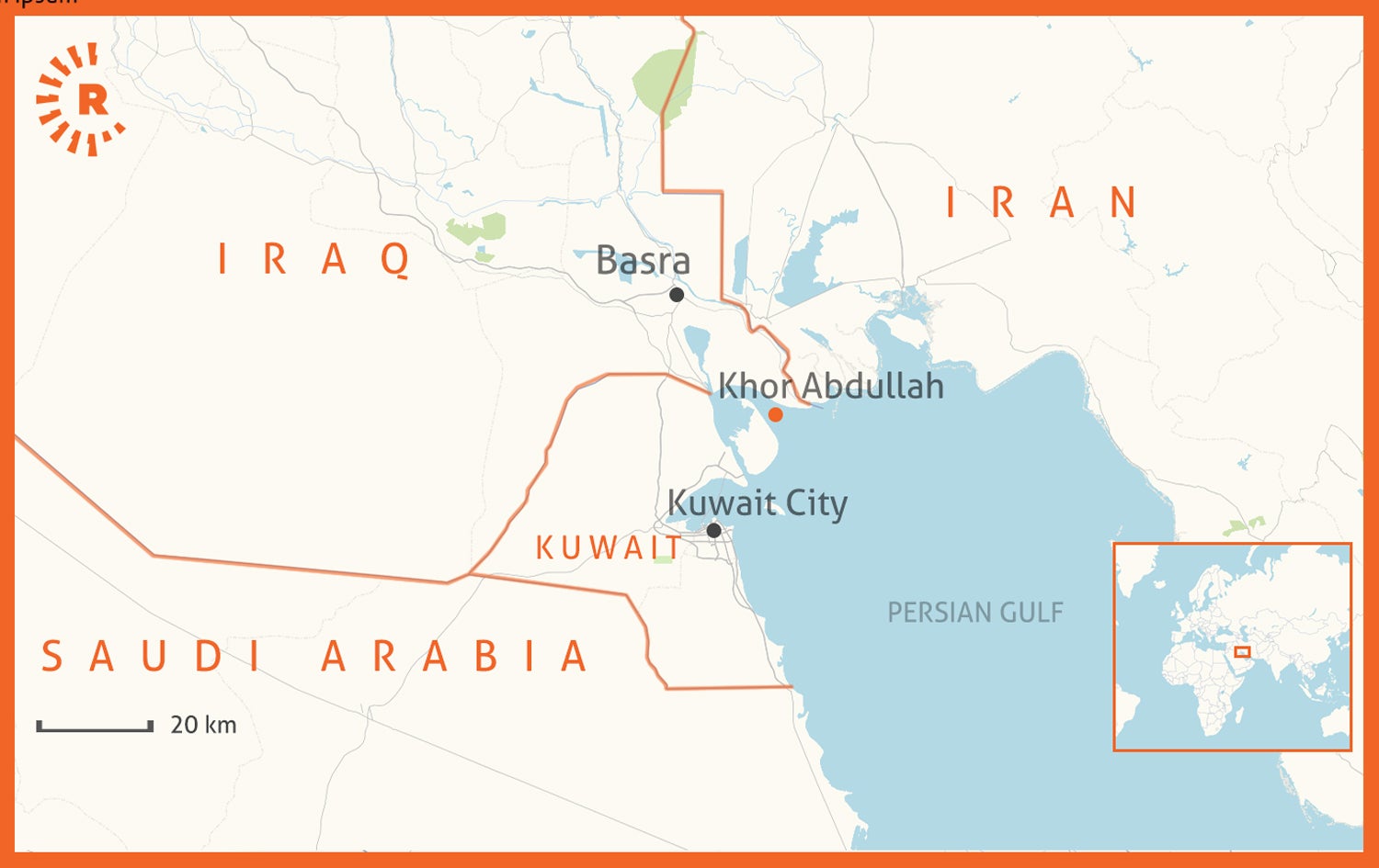 Khor Abdullah is the border waterway that separates Iraq from Kuwait, and is the gate for most of Iraq’s oil exports flow. It is one of several shared strategic border crossings between Iraq and Kuwait, with others including Safwan in the southern city of Basra and the Um Qasr port south of Basra.