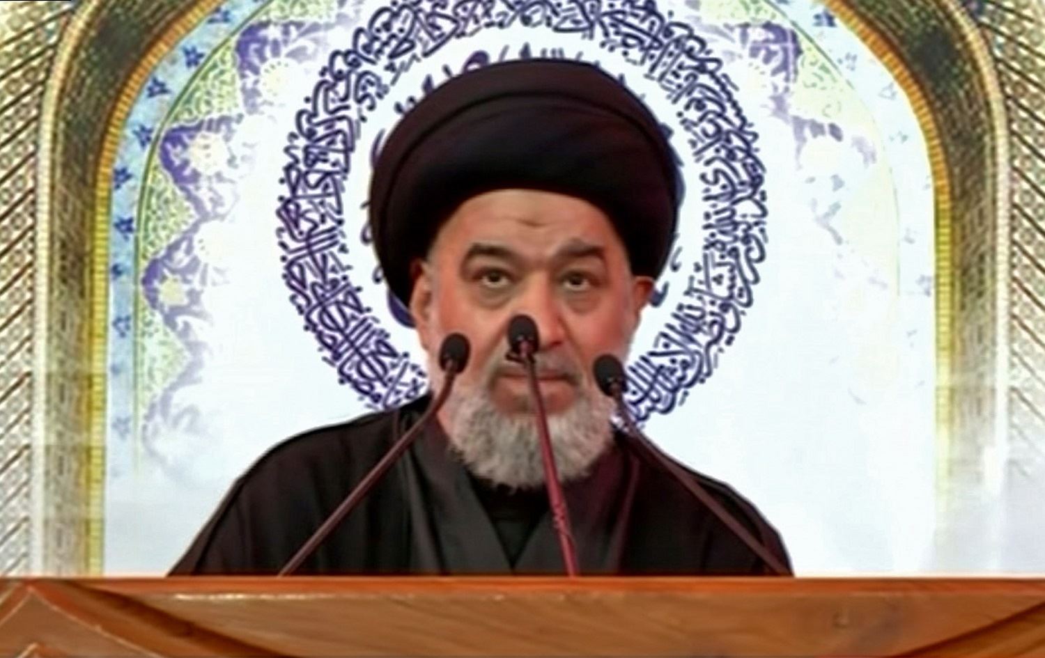 Ahmad Al-Safi, a representative of Iraq's Shiite spiritual leader, reads a statement by Grand Ayatollah Ali Sistani in the central shrine city of Karbala, October 4, 2019. Photo: Iraqiya TV / HO / AFP
