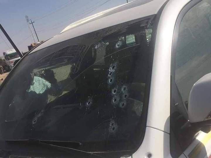 The windscreen of Bashir Hussein Gorya's car purportedly riddled with the gunshots that killed him on October 4, 2020. Photo submitted to Rudaw by a relative of Gorya