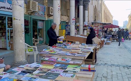 This is al-Mutanabbi Street in Baghdad which is known as the source of Iraq’s literature. Tens of thousands of books are displayed here in different titles.