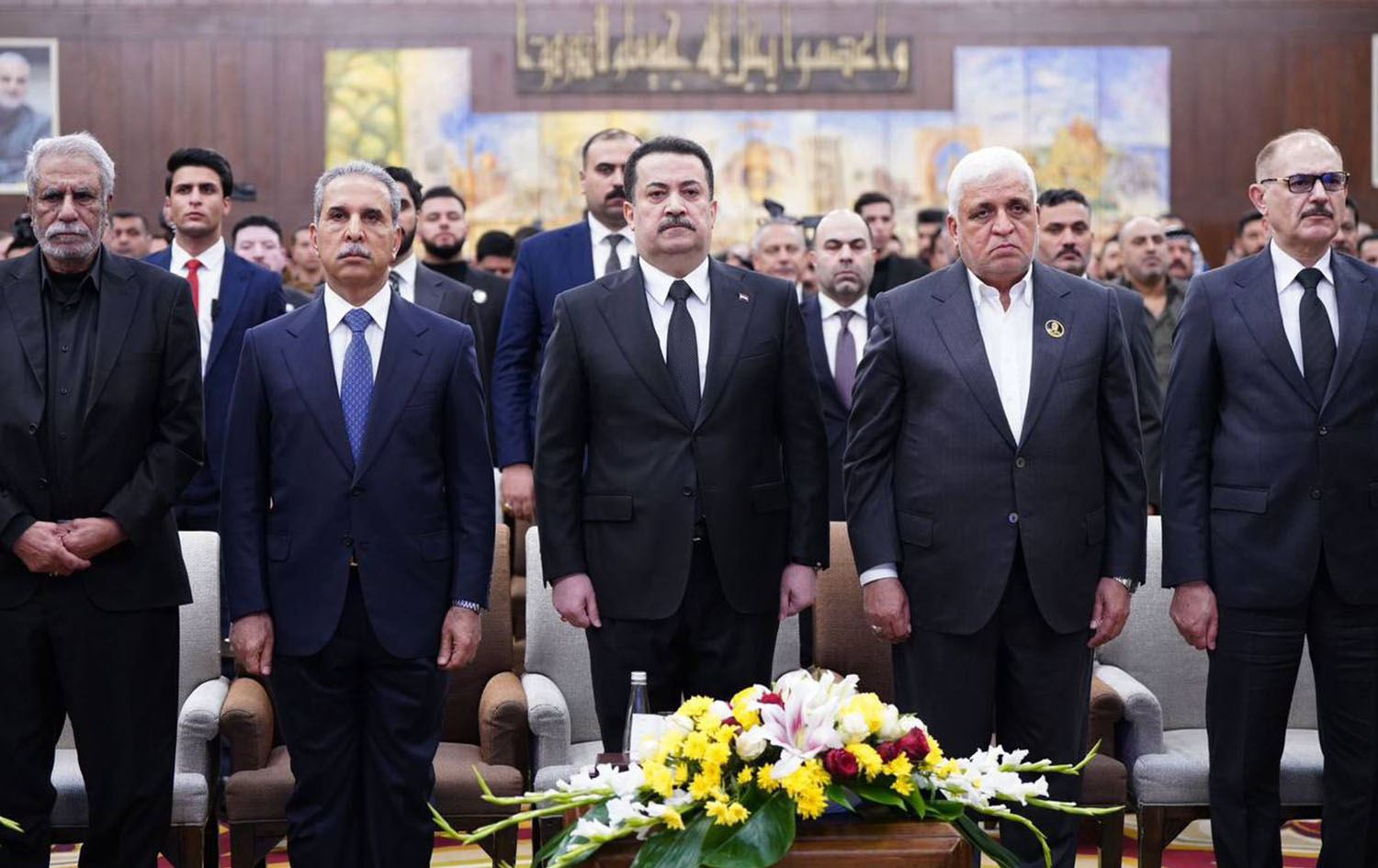 Iraqi Prime Minister Mohammed Shia' al-Sudani (center) in a memorial ceremony organized by the Popular Mobilization Forces (PMF, or Hashd al-Shaabi) in Baghdad commemorating the fourth anniversary of the assassination of Qasem Soleimani and Abu Mahdi al-Muhandis on January 5, 2024. Photo: Sudani's office