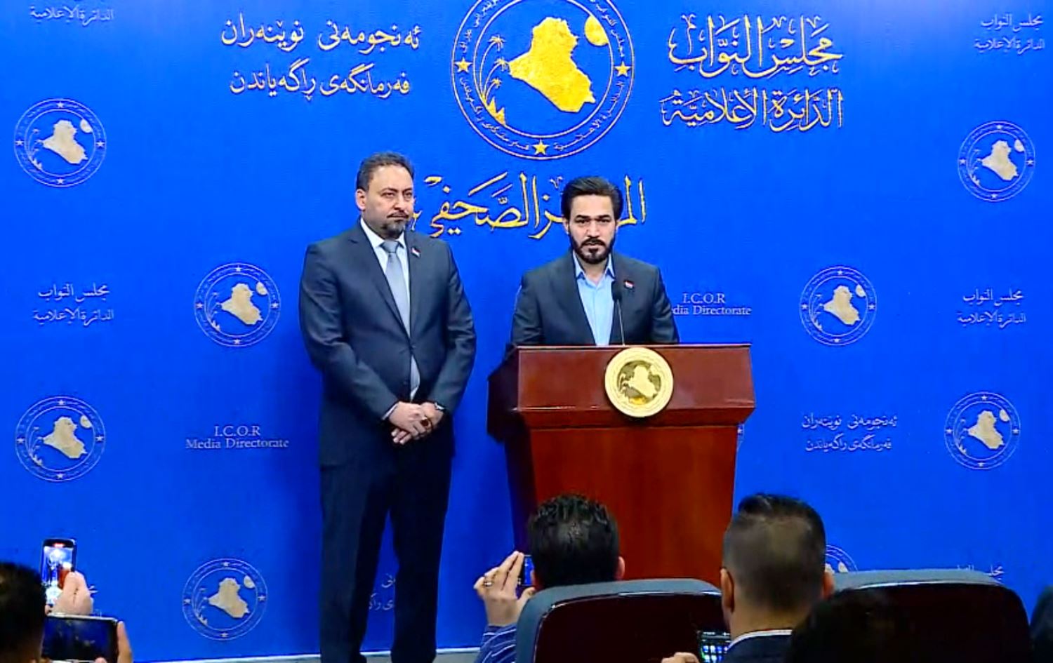 Hassan al-Athari, head of the Sadrist bloc, speaks to reporters in Baghdad on February 5, 2022. Photo: Rudaw