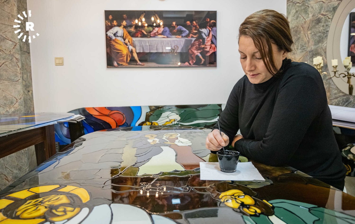 Elsewhere in Qaraqosh, a Christian artist is busy preparing stained glass windows for a local church ahead of the landmark visit to her town.