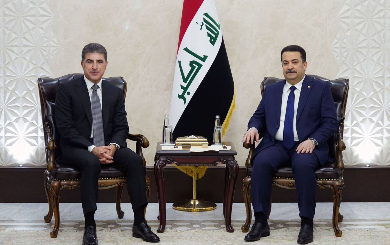From left: Kurdistan Region President Nechirvan Barzani and Iraqi PM Mohammed Shia' al-Sudani meeting in Baghdad on January 13, 2024. Photo: Sudani's office