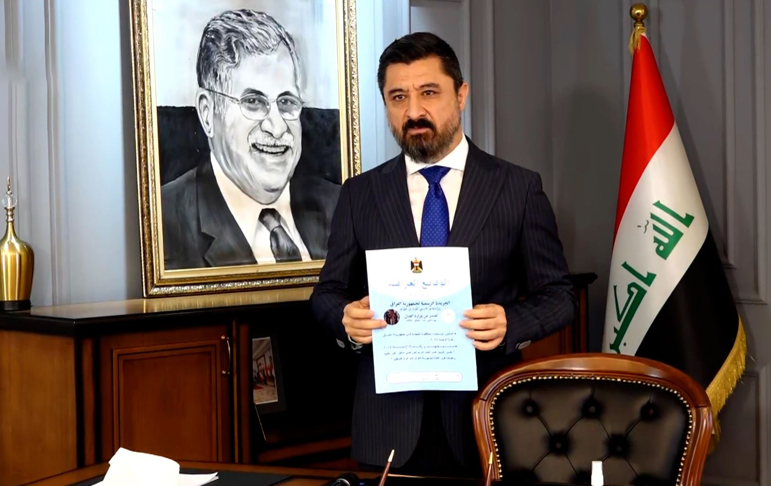 Iraqi Justice Minister Khalid Shwani holds a copy of the Official Gazette of Iraq formally recognizing Halabja as a province on May 5, 2025. Photo: Iraqi justice ministry