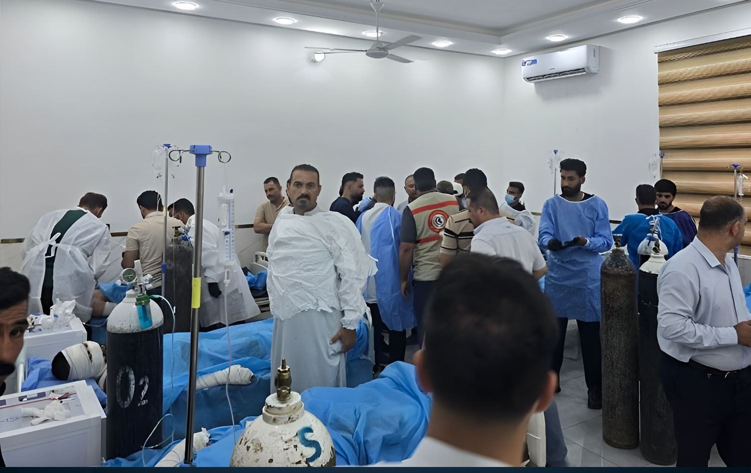 A scene at a hospital in Babil province, where tens of injured people were taken after a gas explosion at a bakery on June 4, 2025. Photo: Submitted