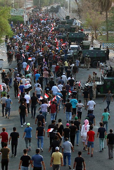 Col. Gen. Jameel al-Shamari, the commander of Basra Operations Command, who had been put under siege by protestors, accused “gangs” of targeting and shooting protestors.